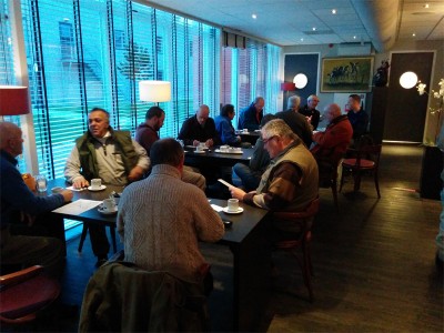 wettelijk geldig als toestemming om in de wateren die in de Gezamenlijke Lijst van Nederlandse Viswateren staan te mogen vissen. Je hoeft dus het dikke boekje met de dunnere aanvulling niet meer mee te nemen in je vistas. Voorwaarde is wel dat je een mobile telefoon bij je hebt waarop je de VISplanner-app hebt geïnstalleerd en dit kan laten zien. Voor iedereen in onze Hengelaarsclub die deelneemt aan een wedstrijd, kan het ook geen kwaad om vooraf te controleren waar je wel of niet mag vissen. Je kunt op allerlei manieren de visplanner bekijken. Bijvoorbeeld op www.visplanner.nl op je pc of op de VISplanner-app op je mobile telefoon of tablet. Dit voorkomt problemen als je op een leuke stek lekker staat te vangen en een controlerende boa komt je (zwaaiend met zijn bonnenboekje) vertellen dat je er niet mag vissen. Vanaf april wordt er ook vooraf de wedstrijd in Aduard de gelegenheid gegeven om de VISplanner te bekijken. Vooraf aan de wedstrijd verzamelen we ons in Aduard en gaan hier koffiedrinken en bijpraten. We zitten meestal aan 3 of 4 tafels.