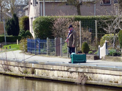 In Bolsward hebben we de auto’s geparkeerd bij de school en zijn al snel onze eigen weg gegaan. Ik ben met Joris, Manfred en Anton naar de Stadsgracht gelopen. Dit ligt vlak naast de parkeerplaats en hier ligt een hele mooie steiger langs de kant. Anton had deze keer ook een karretje voor de visspullen meegenomen. Hij ging naar een leuke stek een eindje verderop achter een heg.